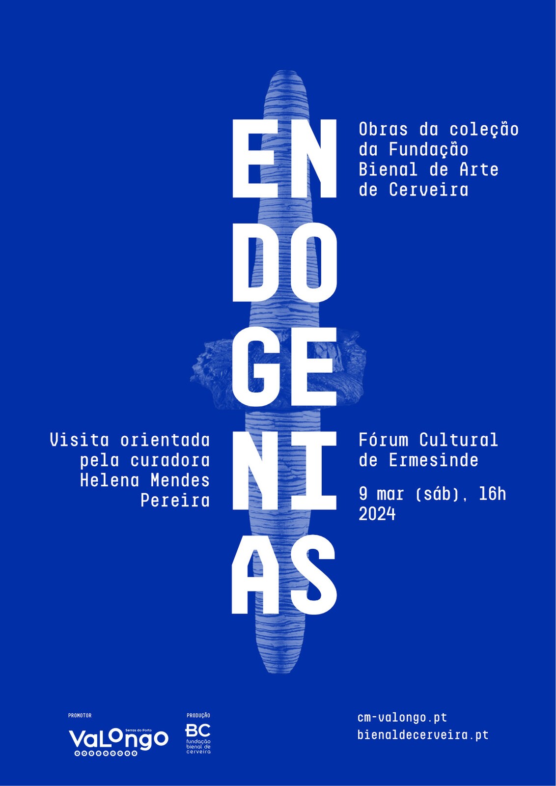 No próximo dia 09 de março, pelas 16h, no Fórum Cultural de Ermesinde, realiza-se uma visita orientada à exposição "Endogenias", com a participação da curadora Helena Mendes Pereira. Esta exposição conta com obras da Coleção da Fundação Bienal de Arte de Cerveira.