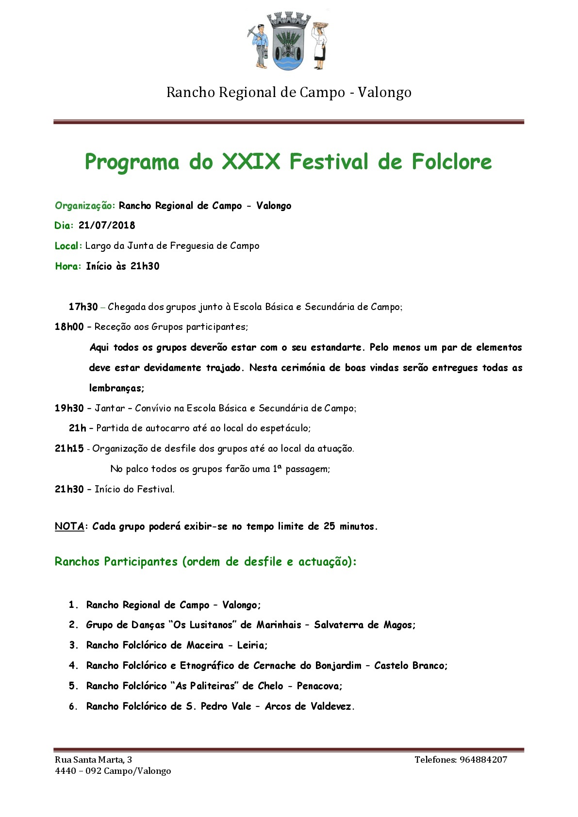 Campo vai viver com fervor a XXIX edição do Festival de Folclore, organizado pelo seu grupo. No palco irão desfilar tão belos e sugestivos quadros da tradição e da etnografia do país, evocados por grupos tão distintos quanto diferentes, mentores culturais de cada uma das regiões retratadas.