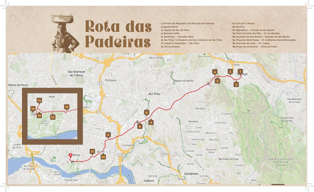 Este itinerário, de 13 quilómetros, é uma homenagem à dedicação e ao labor incansável das padeiras, cujo esforço foi fundamental para afirmar a identidade e a tradição de Valongo. Com início na Oficina da Regueifa e do Biscoito, no coração de Valongo, segue a antiga Estrada Real n.º 33, ligando Valongo ao Porto, passando por Fânzeres, Venda Nova e Rio Tinto, até alcançar a emblemática Praça da Cordoaria, no Porto.