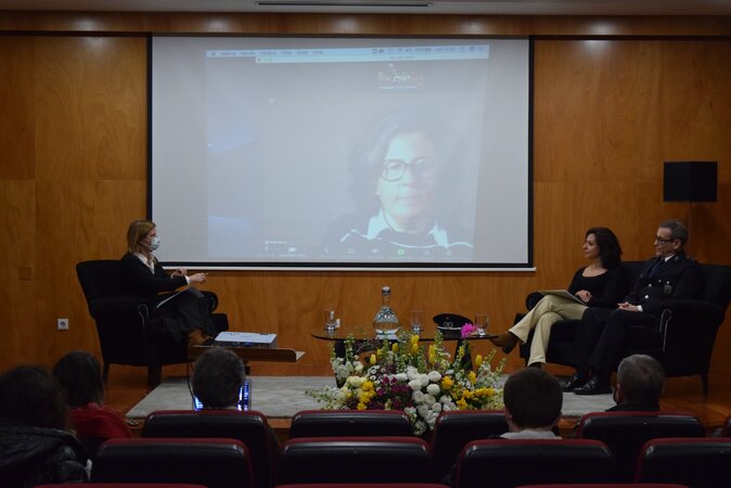 Este momento contou com a presença da Drª. Fátima Azevedo (1º Passo CMV), da Drª. Paula Mouta (ACES Maia/Valongo), de António Bispo (Agente Principal PSP) e teve como moderadora a Profª. Madalena Oliveira.