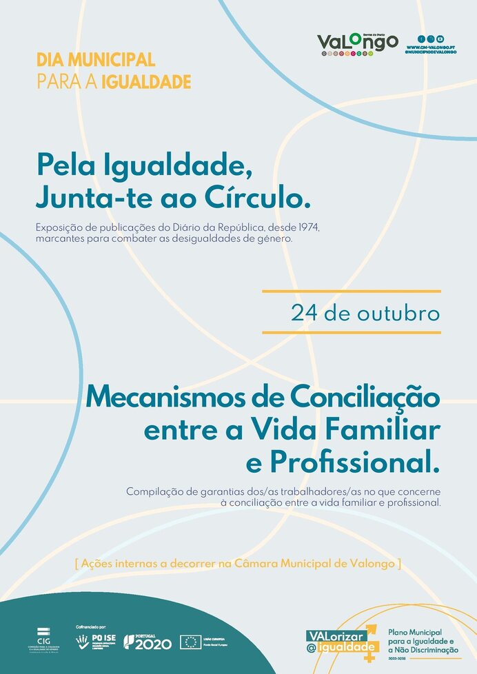 A Câmara Municipal de Valongo vai, como habitualmente, assinalar o Dia Municipal para a Igualdade, que se comemora a 24 de outubro, com a realização de algumas ações, nomeadamente uma Exposição de publicações do Diário da República, desde 1974, marcantes para combater as desigualdades de género e a Compilação de garantias dos/as trabalhadores/as no que concerne à conciliação entre a vida familiar e profissional.