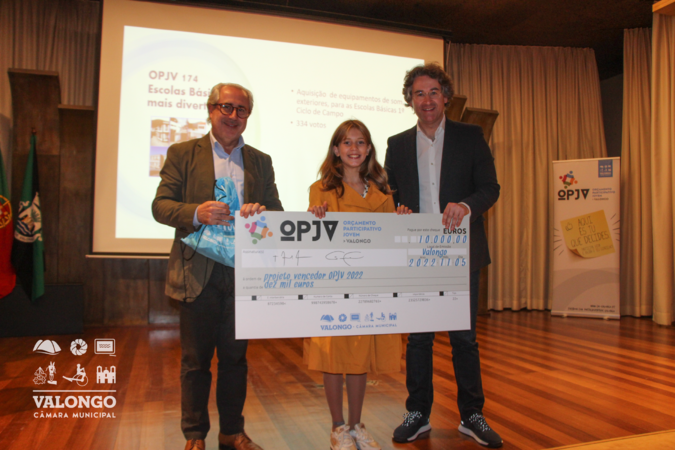 Os projetos vencedores da 9ª edição do Orçamento Participativo Jovem de Valongo (OPJV) foram apresentados na Gala Final, que se realizou no dia 5 de novembro, no Auditório Dr. António Macedo, em Valongo, numa cerimónia onde também foram apresentadas as principais novidades da próxima edição deste projeto de democracia participativa. Os cheques foram entregues pelo Presidente da Câmara Municipal de Valongo, José Manuel Ribeiro, e pelo Vereador da Educação, Juventude e Cidadania, Orlando Rodrigues, numa gala que contou com apontamentos culturais a cargo da Academia Tigre Branco e do grupo Move On Dance da AACE.