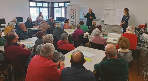Um grupo de alunos/as da Academia Sénior do programa Acreditamos em Seniores Ativos participou no passado dia 17 de fevereiro, numa sessão do projeto Lab 2050. O projeto Lab 2050 visa lançar um debate sobre o que é desejável para Portugal no ano 2050.