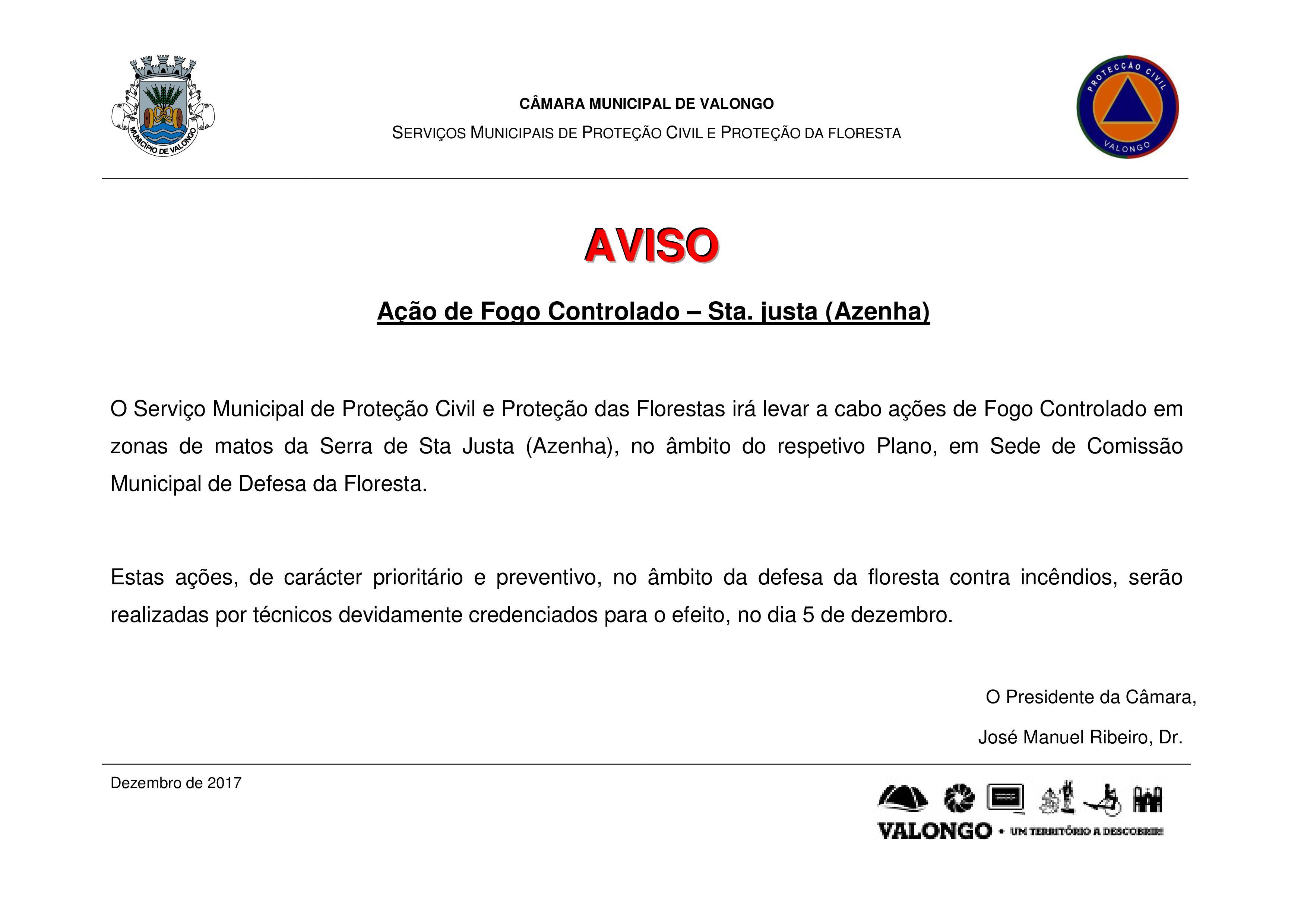 Na próxima terça-feira (dia 5 de dezembro) serão levadas a cabo ações de fogo-controlado na zona da Azenha (às Águas Férreas), na Serra de Santa Justa.