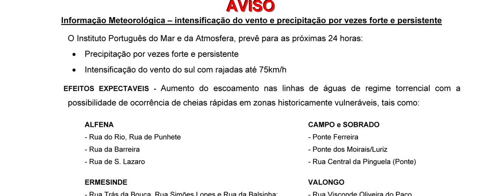 Informação Meteorológica – intensificação do vento e precipitação por vezes forte e persistente