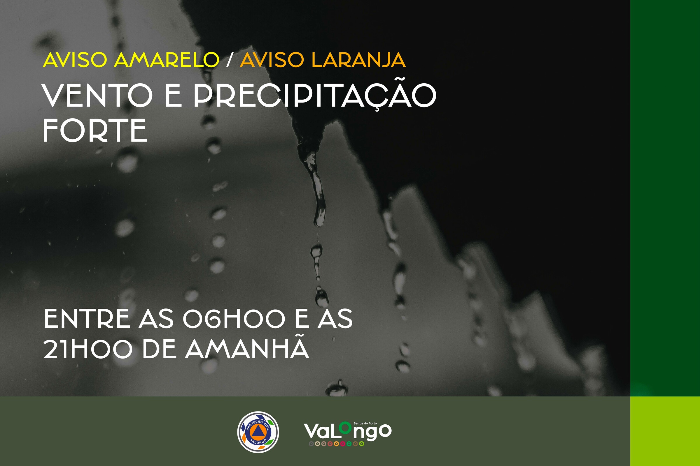 Aviso - Precipitação e vento forte entre as 06h00 e as 21h00 do dia 11 de fevereiro