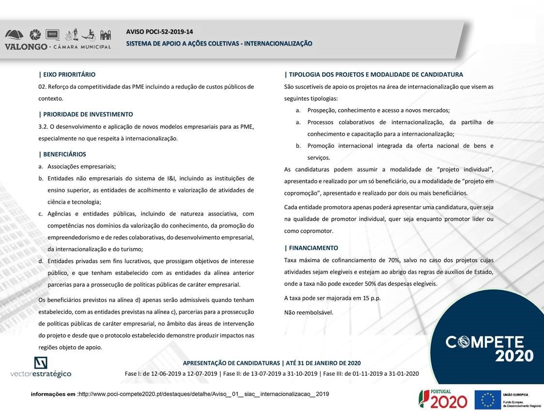 Candidaturas do Programa Compete 2020 - Ações Coletivas – Internacionalização