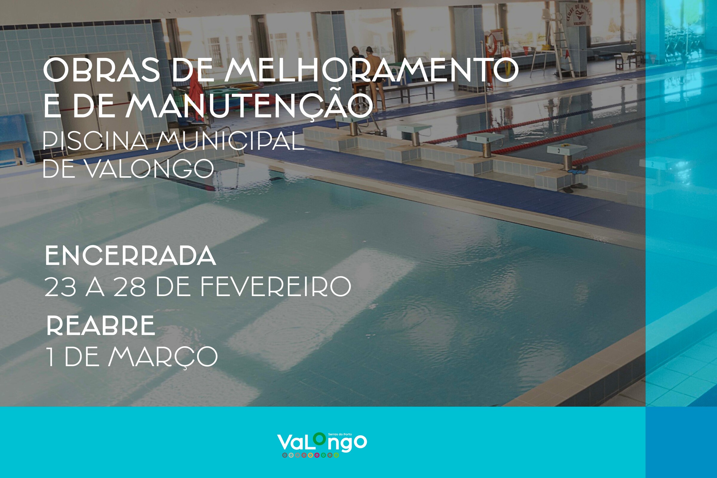 Devido a obras de melhoramento e de manutenção, a Piscina Municipal de Valongo encontrar-se-á encerrada de 23 a 28 de fevereiro (segunda-feira a sábado), reabrindo no dia 1 de março (domingo).