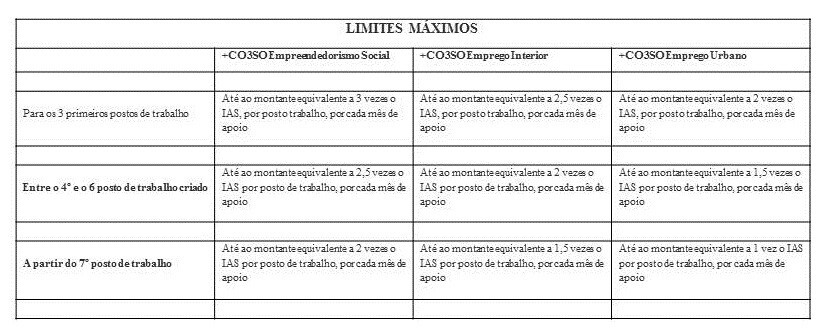 - Para as mesmas despesas elegíveis, os apoios concedidos ao abrigo do +CO3SO Emprego não são cumuláveis com outros apoios diretos ao emprego, aplicáveis ao mesmo posto de trabalho.