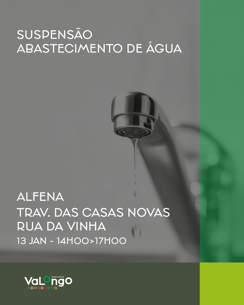 Interrupção do serviço de abastecimento de água no próximo dia 13 de janeiro na Freguesia de Alfena