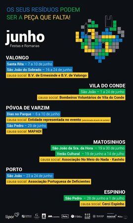 Estes donativos foram atribuídos no âmbito do projeto da Lipor «Recolha Seletiva em Festas e Romarias» e resultam da quantidade de resíduos recicláveis recolhidos em 2018 nas festas da Santa Rita, da Feira da Regueifa e do Biscoito e do São João de Sobrado.