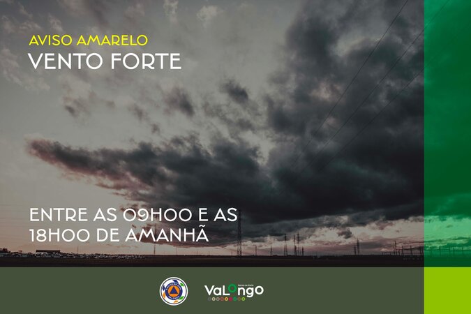 Aviso: Vento forte entre as 09h00 e as 18h00 do dia 07 de fevereiro