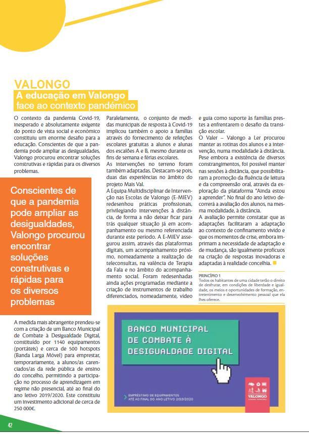 Valongo é um dos Municípios portugueses que dá a conhecer as suas Boas Práticas para fazer frente às dificuldades trazidas pela nova realidade da pandemia COVID-19, no Boletim 41 da Rede Territorial Portuguesa das Cidades Educadoras.