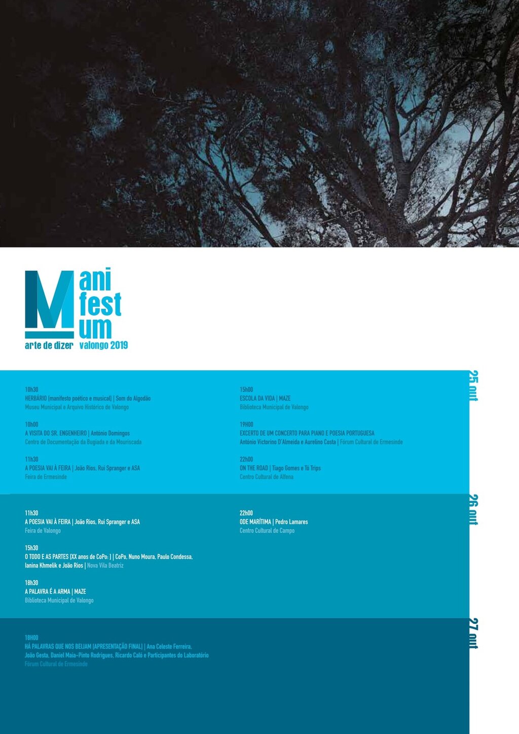 Lançado pela Câmara Municipal de Valongo em parceria com a associação cultural Exemplo Extremo, o projeto «MANIFESTUM arte de dizer» avança com o objetivo primordial de sublinhar Valongo como casa de uma inédita aventura no nosso país: o alcance incomensurável que a palavra dita cria.
