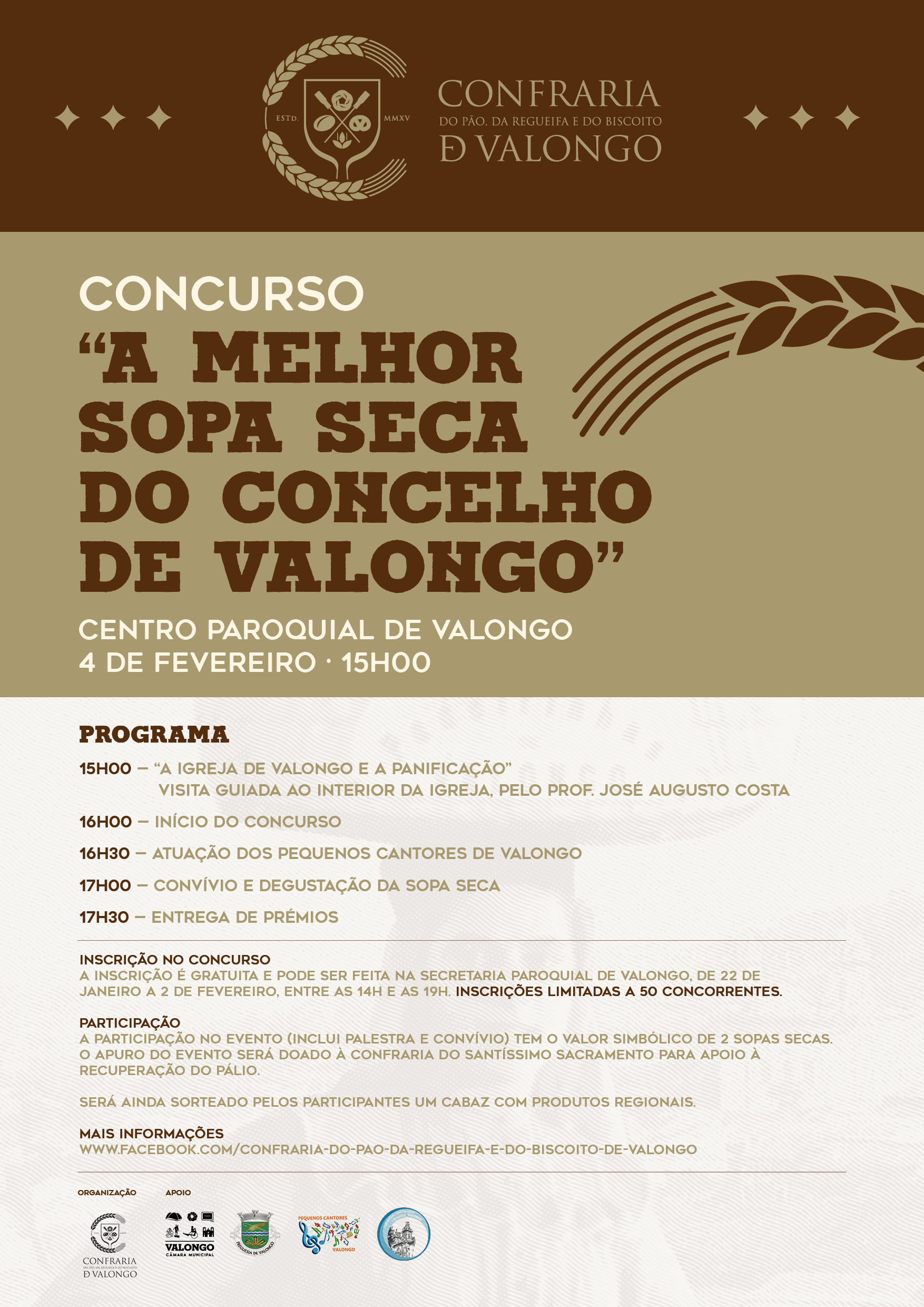 A Confraria do Pão, da Regueifa e do Biscoito, com o apoio da Câmara Municipal de Valongo, vai organizar mais uma edição do concurso "A melhor sopa seca do concelho de Valongo".