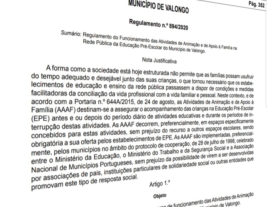 Neste sentido, informa-se que foram publicados, em Diário da República, os Regulamentos das Atividades de Animação e Apoio à Família na Educação Pré-Escolar (AAAF) e da Componente de Apoio à Família no 1.º Ciclo (CAF), que podem ser consultados aqui.
