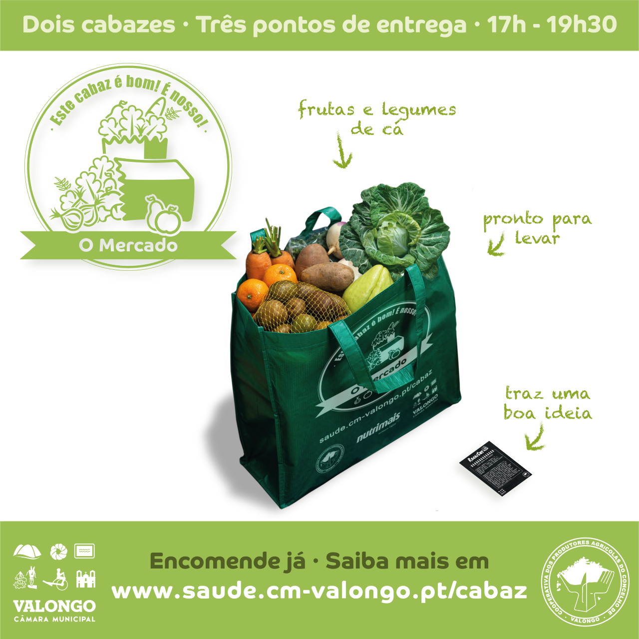 Continua a ser possível encomendar e levantar, semanalmente, o cabaz de produtos frescos, a preços acessíveis.