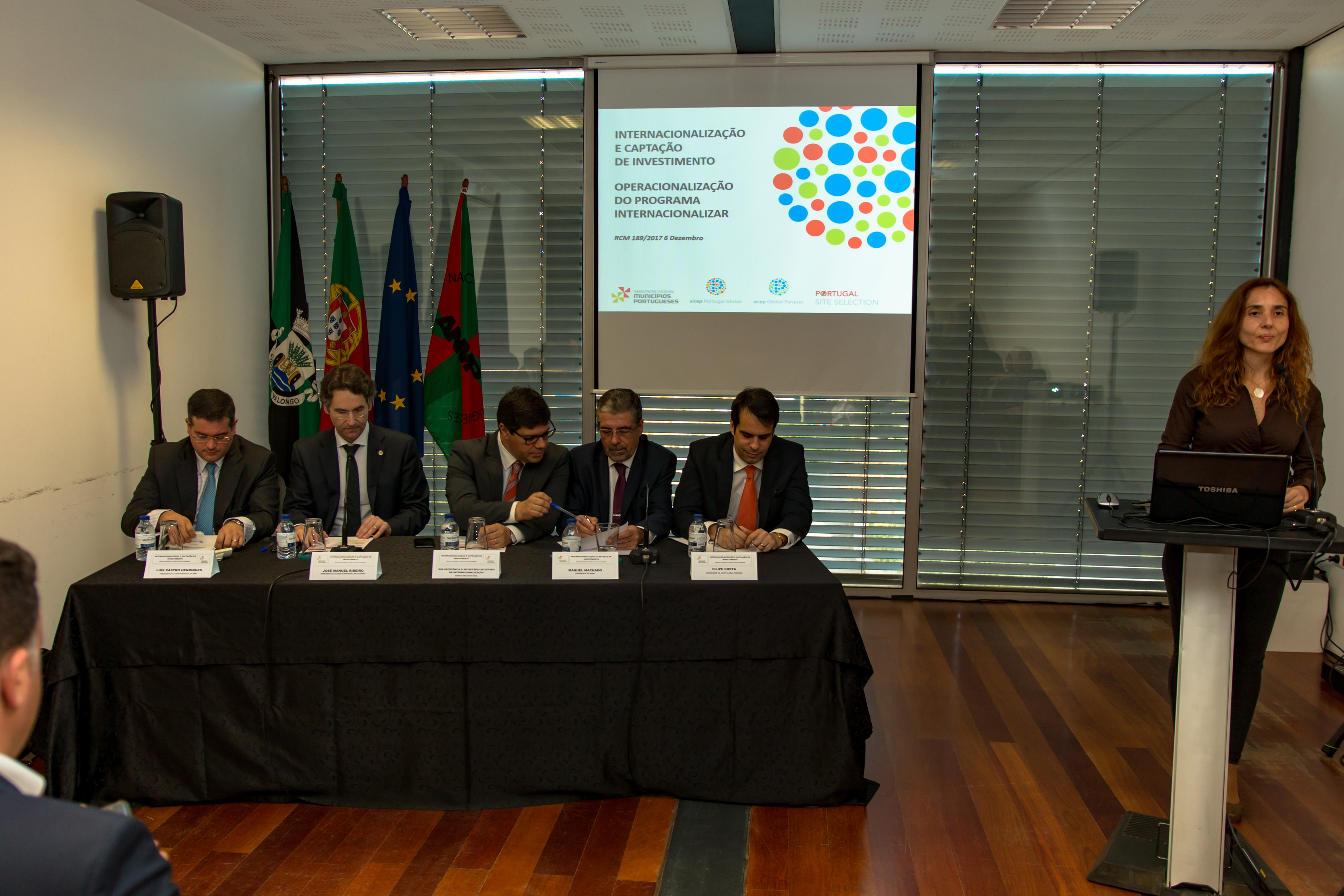 A capacitação dos Municípios para a atração de investimento foi o mote da sessão de informação que se realizou no dia 15 de novembro no Fórum Cultural de Ermesinde, Valongo, com a presença do Secretário de Estado da Internacionalização, Eurico Brilhante Dias; do Presidente da Associação Nacional de Municípios Portugueses, Manuel Machado, do Presidente da AICEP, Luís Castro Henriques, do CEO da AICEP Global Parques, Filipe Costa, e do Presidente da Câmara de Valongo, José Manuel Ribeiro.