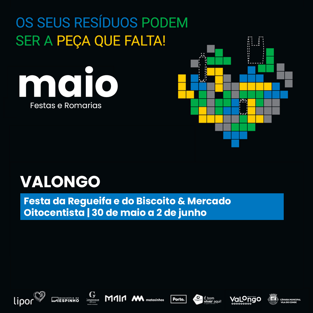 Em 2024, a Feira da Regueifa e do Biscoito e Mercado Oitocentista é uma das selecionadas e contará com o apoio da LIPOR na sensibilização e distribuição de sacos e flyers para a separação de papel/cartão, embalagens/plástico e embalagens de vidro, aos comerciantes durante os dias do evento (de 30 de maio a 2 de junho).