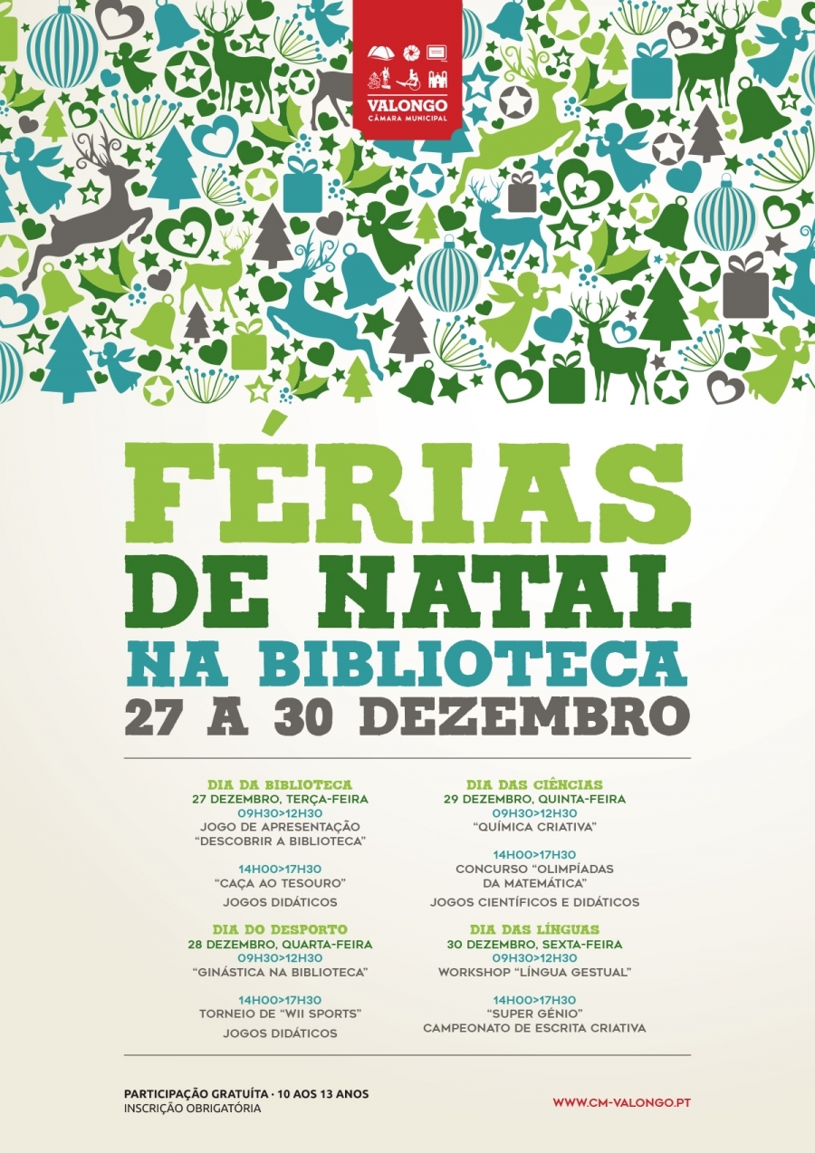 Com o intuito de ocupar o tempo livre dos mais jovens, a Biblioteca Municipal de Valongo vai organizar a atividade "Férias de Natal na Biblioteca". Entre 27 e 30 de dezembro, jovens com idade entre os 10 e os 13 anos vão poder participar em inúmeras atividades de caracter lúdico. A inscrição é obrigatória.