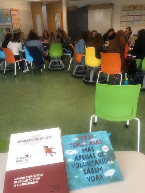Nesta formação foram abordados conceitos e ferramentas práticas para o trabalho em sala com os/as meninos/as do Pré-Escolar, tendo como suporte o KIT “Todos temos asas, mas só os voluntários sabem voar” produzido pela Associação Pista Mágica, entidade que dinamizou esta formação.