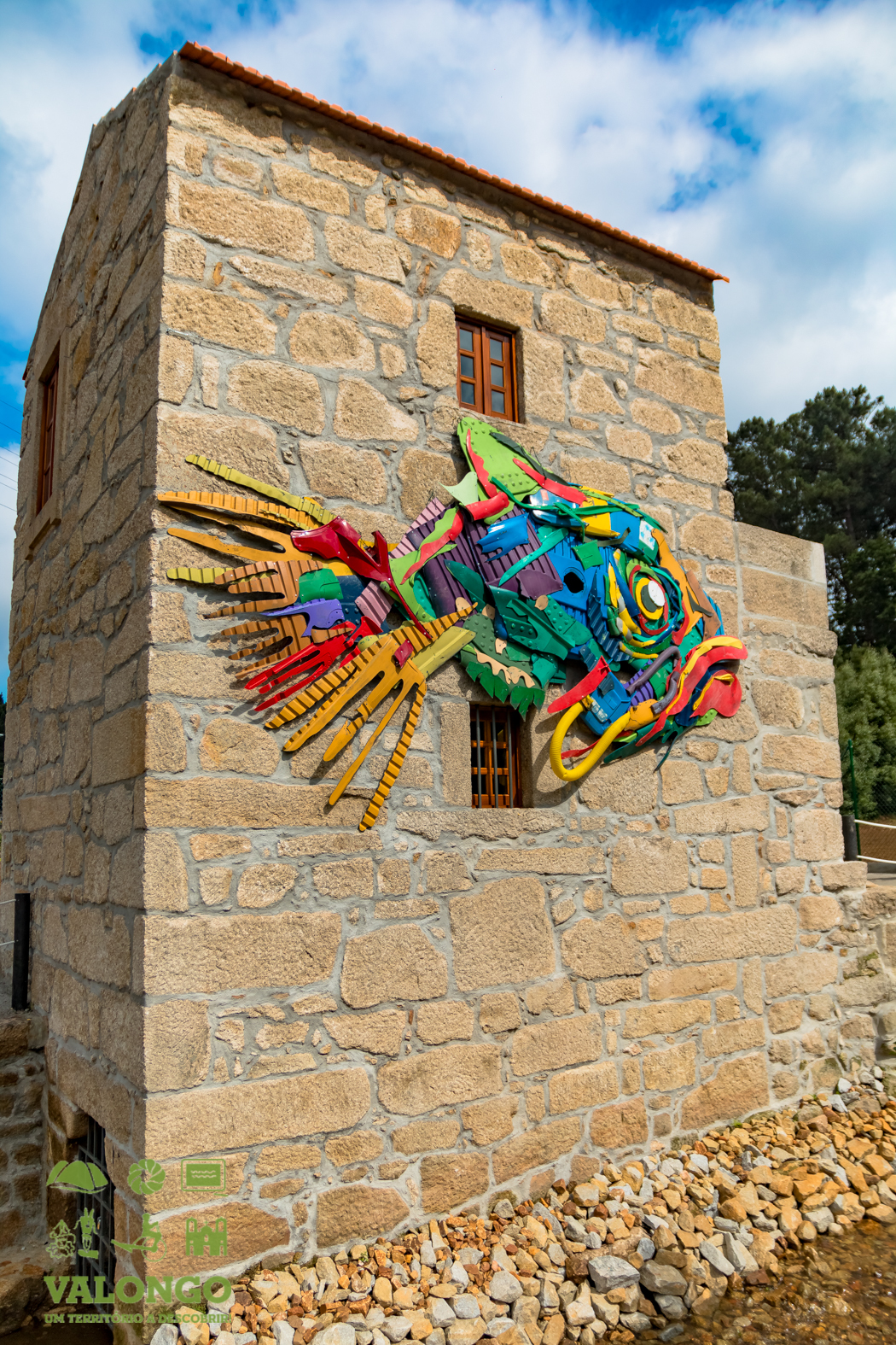 Assim, na parede exterior principal do Centro de Interpretação Ambiental está a escultura do artista Bordalo II, “Peixe”, que simboliza por um lado todo o processo de renaturalização e recuperação que está a ser levado a cabo no troço do rio Tinto que passa no Trilho Ecológico da Lipor, e por outro os princípios da Economia Circular e da reutilização, em que os resíduos passam a ser olhados como matéria-prima!