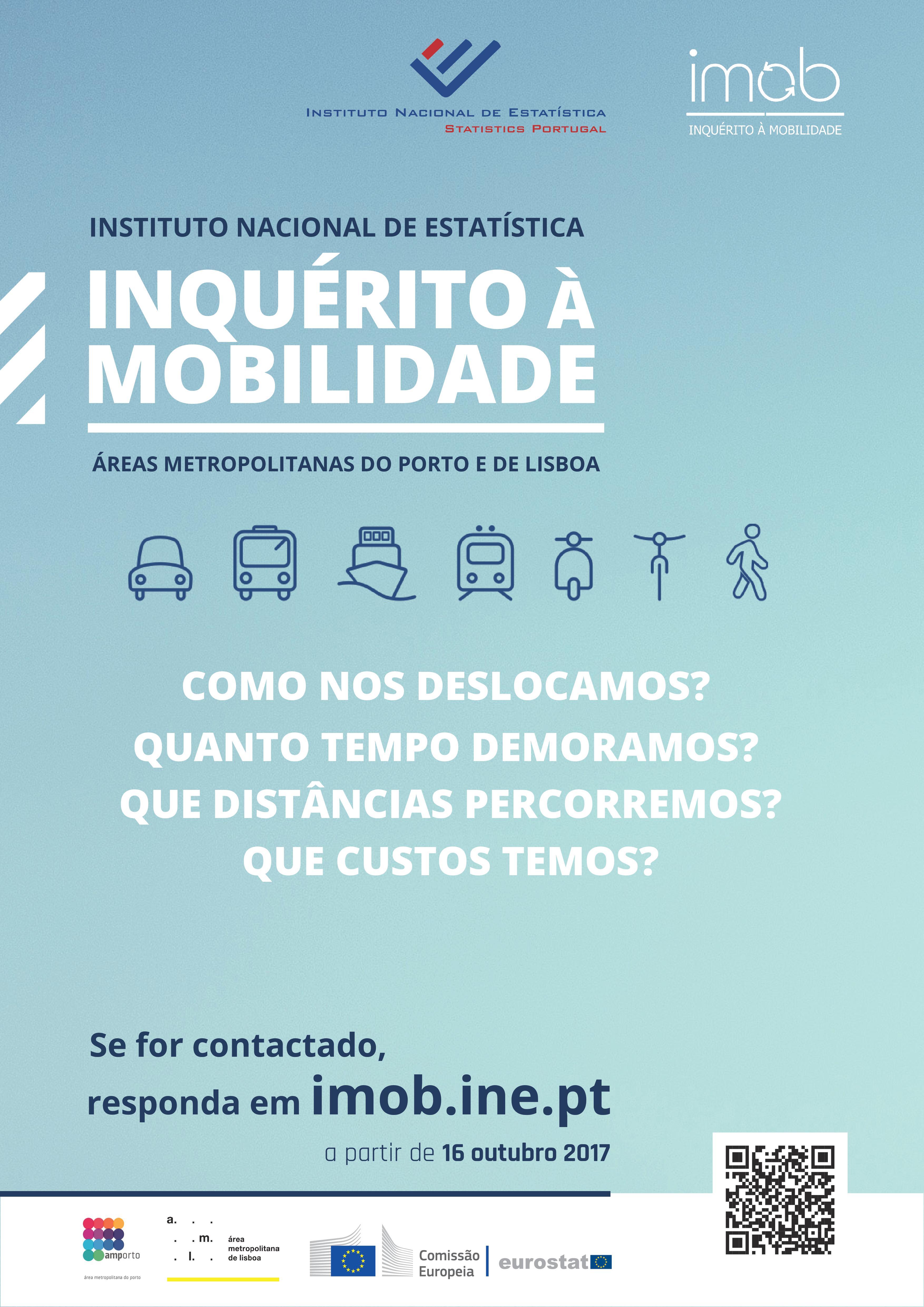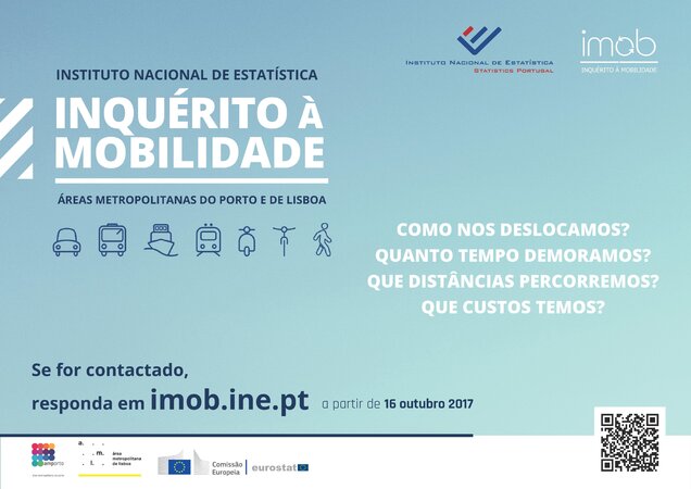 O INE está a realizar o Inquérito à Mobilidade, nas Áreas Metropolitanas de Lisboa e do Porto, entre outubro e dezembro de 2017.
