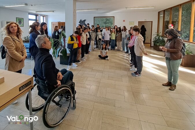 No âmbito da iniciativa «Leituras em Movimento» promovida pela Biblioteca Municipal de Valongo, um grupo de alunos e professores italianos, que se encontram a fazer um intercâmbio com a Escola Vallis Longus, acompanharam os alunos, que realizaram as leituras em Movimento no edifício da Câmara Municipal de Valongo, no dia 28 de março.