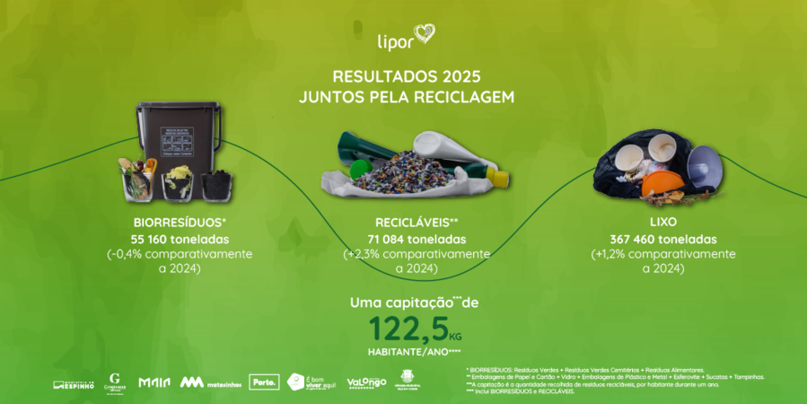 A produção de lixo dos munícipes aumentou +1,2%, face a 2024. Ainda assim, o modelo integrado da LIPOR permitiu encaminhar 367 460 toneladas para Valorização Energética, assegurando a produção de 163 985 MWh de energia elétrica para a rede nacional, gerada na Central de Valorização Energética. Apenas 16 742 toneladas foram depositadas em aterro.