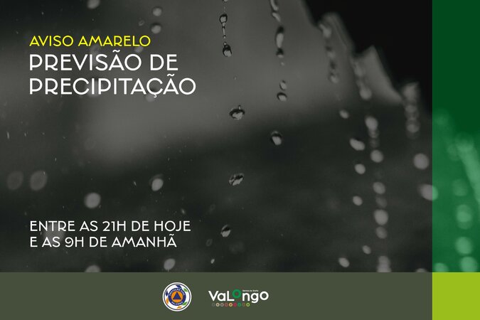 Aviso - Manutenção de Precipitação Persistente entre as 21h00 do dia 28 e as 09h00 do dia 29 de janeiro