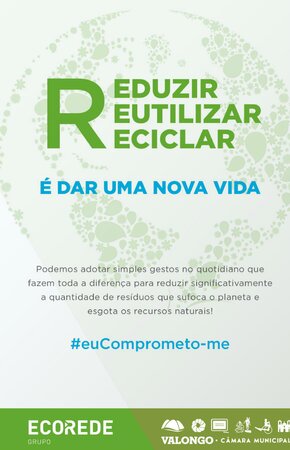 «Reduzir, Reciclar, Reutilizar é dar uma Nova Vida». Este é o mote da campanha promovida pelo Município de Valongo para apelar à adoção de simples gestos no quotidiano que fazem toda a diferença para reduzir significativamente a quantidade de resíduos que sufoca o planeta e esgota os recursos naturais.