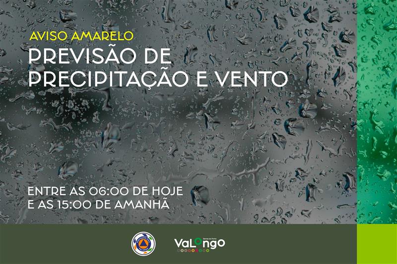 Previsão de precipitação e vento fortes, entre as 06h00 de hoje até às 15h00 de amanhã, dia 27 de janeiro.
