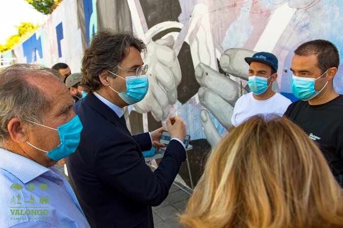 O Presidente da Câmara de Valongo e os presidentes das Juntas de Freguesia e Alfena e de Ermesinde acompanharam in loco a primeira intervenção do projeto - um tributo ao brinquedo tradicional Português, que está a ser realizado em Ermesinde, entre o Túnel da Costa e o Edifício Dr. Faria Sampaio.