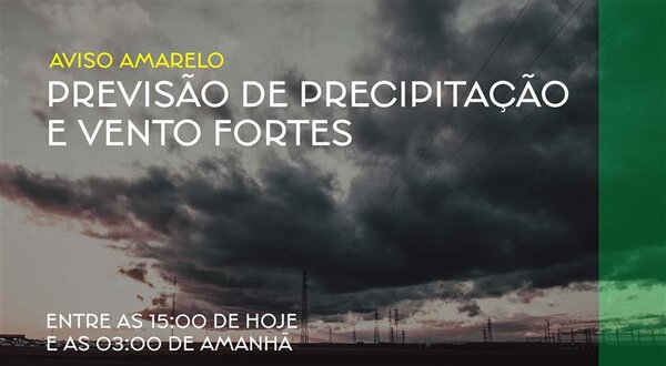 Aviso - Previsão de precipitação e vento fortes, entre as 15h00 de hoje até ...