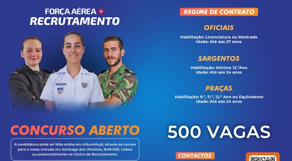 Força Aérea tem abertas 500 vagas
