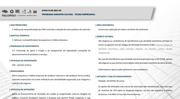 Programa Garantir Cultura - Tecido Empresarial