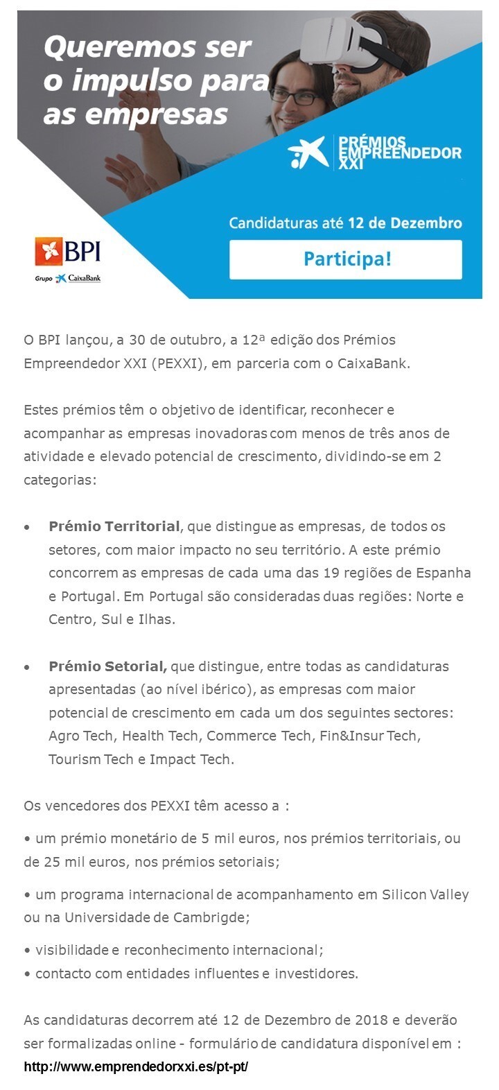 Mais informações:PRÉMIOS EMPREENDEDOR XXI