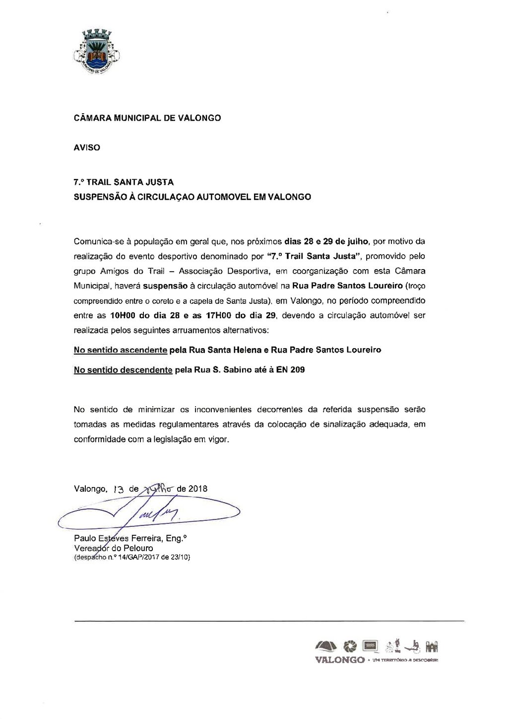 Interrupções de trânsito: Trail de Santa Justa