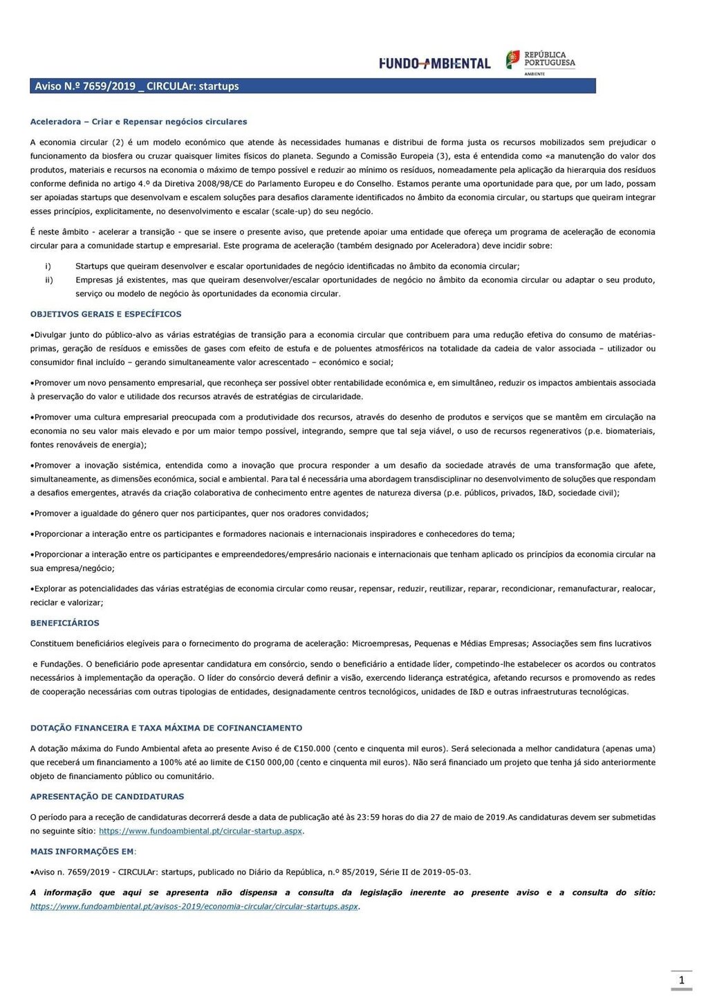 Anúncio de candidaturas do Fundo Ambiental - Startups