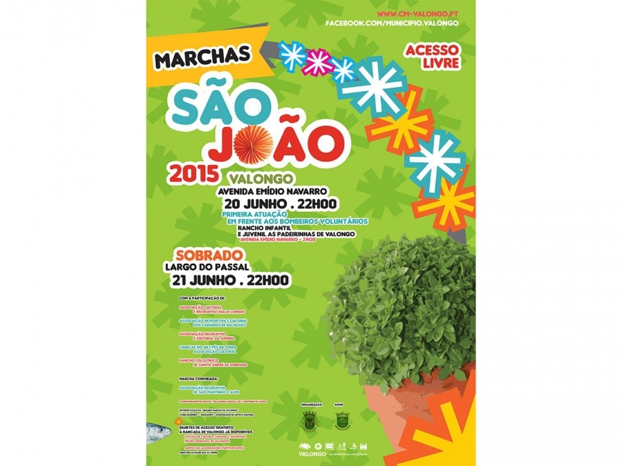 Objetivo: Assinalar a data sanjoanina com as tradicionais marchas populares, típicas dos festejos associados aos santos populares, fomentando o envolvimento e a participação de várias Associações do concelho. Incutir diferentes dinâmicas no seio das Associações concelhias. Dinamizar culturalmente o concelho de Valongo.
